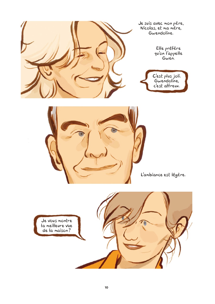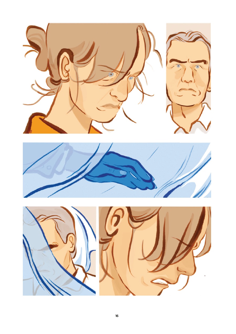 Accompagnant ce récit, le dessin d’Alexandra Petit transmet particulièrement bien les ressentis, que ce soit les émotions intenses générées par la remontée de souvenirs difficiles pour Marine, la gêne de certains de ses interlocuteurs, les attitudes sur la défensive de son paternel et de la tata Corinne, le fatalisme d’autres (« Que pouvions-nous faire sans preuve, avec juste un soupçon que, peut-être ? »). L’accent est porté sur les regards, les gestes, les postures.