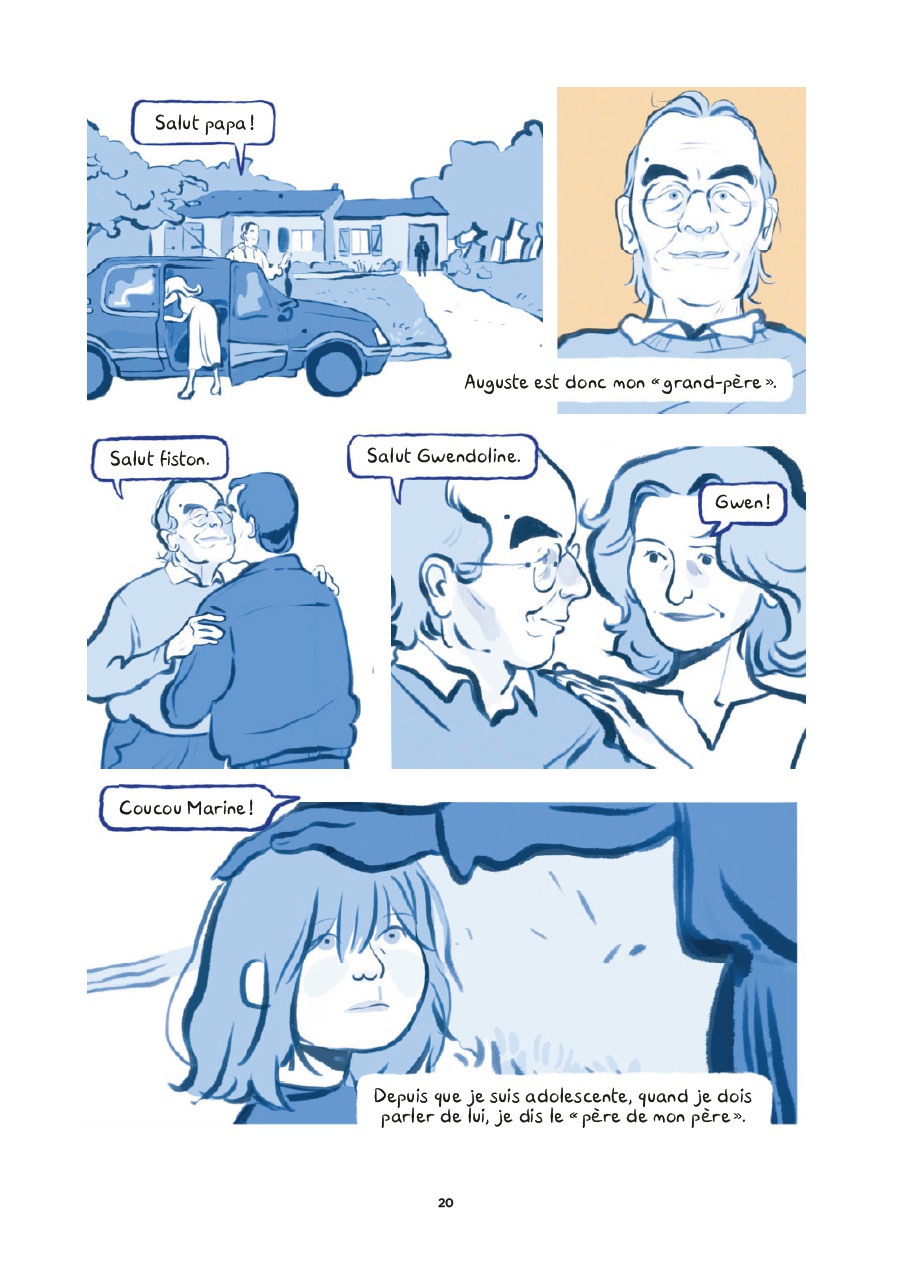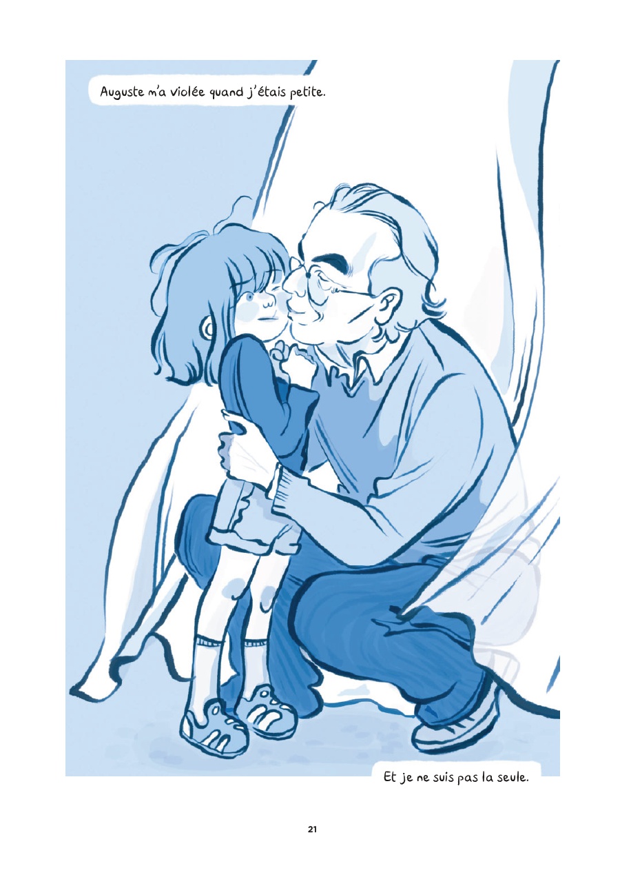 Après une brève introduction posant le cadre, Marine Courtade entame la plongée dans ses souvenirs, ou plutôt des fragments qu’elle conserve des faits et de ce qui s’est ensuivit. Elle évoque l’image de ce « père de son père » (qu’elle ne peut plus nommer « grand-père ») : l’apprentissage des échecs, la manière de peler une pomme - autant de choses qu’elle a désormais en horreur – et ces chocolats qu’il lui donnait pour qu’elle se taise. L’autrice reste pudique sur les attouchements, les viols, jamais montrés, juste suggérés. Elle révèle également que sa mémoire est parcellaire, marquée par la sidération, altérée par les mécanismes de défense de la survie, tout en ayant conscience des conséquences que cela a eu sur ses relations amoureuses postérieures et sur certaines peurs. Surtout, la journaliste s’interroge : qui savait ? Pourquoi personne n’a porté plainte ? Pourquoi chacun a-t-il continué à vivre comme si de rien n’était ? Combien ont été également les proies de l’abuseur ? Au fil des entretiens avec ses parents, ses oncles, ses tantes et une grand-cousine, Marine Courtade extirpe à la lumière la vérité douloureuse, la honte prégnante, le malaise palpable, le déni, l’impossibilité de dénoncer l’agresseur avec lequel les liens filiaux et affectifs sont très forts. Les raisons du silence maintenu sont diverses et touchent souvent à l’immense difficulté d’accepter que le géniteur connu et apprécié puisse être un prédateur pernicieux. Malgré tout, la scénariste se garde de juger ; elle écoute, mesure, cherche à cerner. Elle s’aperçoit aussi, comme elle l’explique en épilogue, que cette omerta est plus complexe qu’il n’y paraît. Surtout, et cela apparaît primordial, elle reçoit ce dont elle avait cruellement besoin : la reconnaissance par les siens de son statut de victime.
