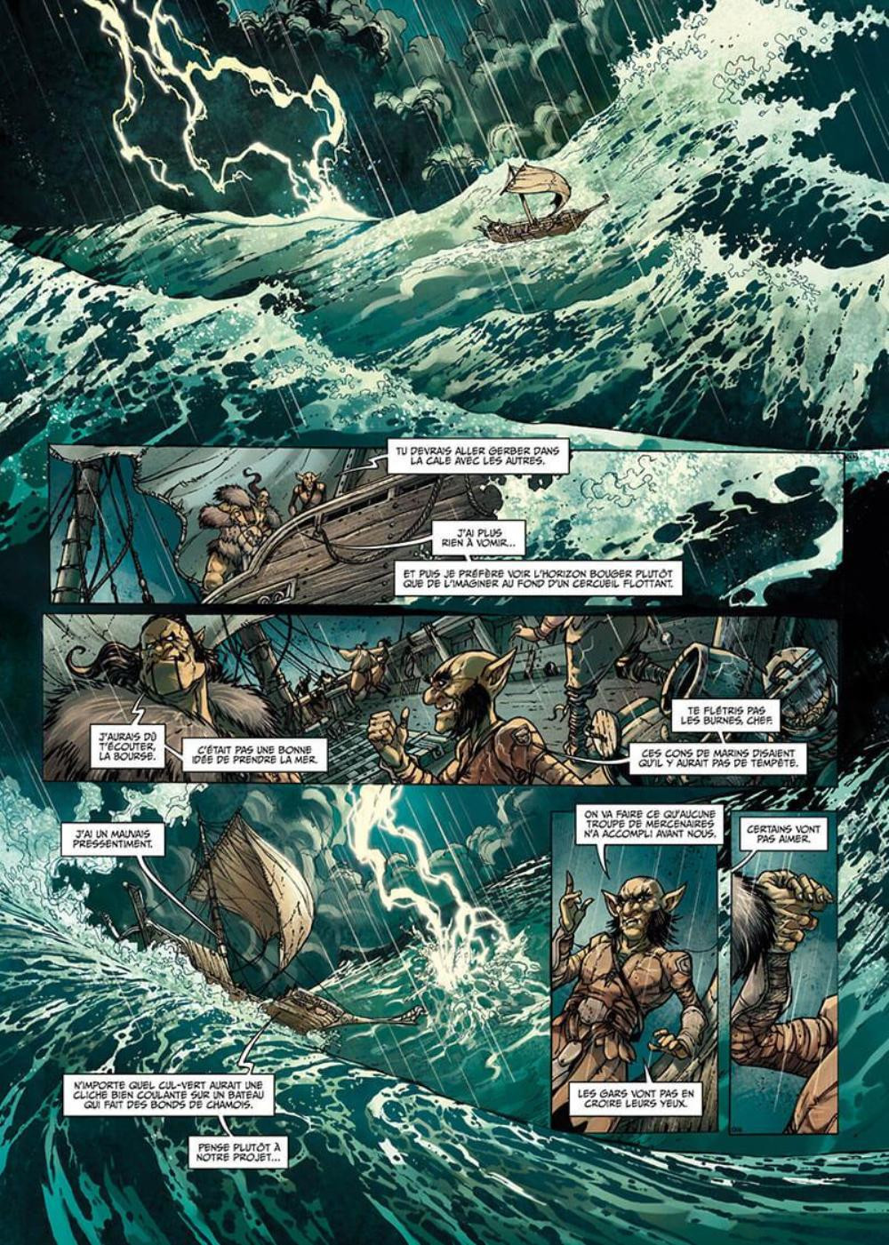 On retrouve un peu du sel de la série dans ce tome 17 après deux épisodes moyens. Mais « la meute » reste un cas à part : l’histoire met en avant la réflexion et la bienveillance, qualités rarissimes pour un cul vert, et propose des alliances originales entre les races, une maturité nouvelle chez les Orcs et un optimisme original. Les trognes rugueuses et les paysages durs fonctionnent en contraste parfait de ce conte de fées medfan. Les personnages sont bien définis, attachants et singuliers, leur nombre est à la hauteur d’un scénario plein de psychologie et de subtilités : Trésor, Renard, Kloviok, Tulk, … Le surnom du héros prête à des réflexions récurrentes, ce qui n’est pas le cas de « la masse » dont la situation psychique assurait pourtant une blague facile. Cet album drôle et positif prend à revers les lecteurs des tomes 31 et 32 des Elfes avec une cohabitation sympathique entre les humains et les culs verts, il frôle même parfois la candeur naïve, mais reste crédible, s’appuyant sur l’intelligence brutale de « la bourse » et de son lieutenant. Un bel album humaniste avec des échos de Orcs 9 pour la troupe et Nains 13 pour la construction.Le 15/10/2022 à 17:53:35
