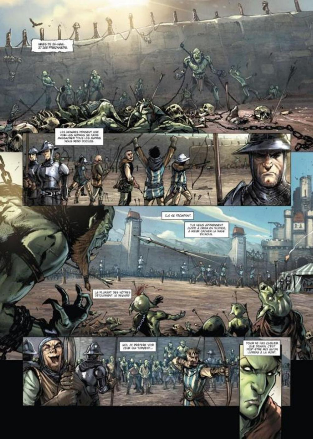 Un album qui fait le parallèle avec la Shoa : les humains cantonnent les orcs et les gobelins dans un immense camp de concentration, qui devient camp d'extermination : travail forcé dans les mines, mauvais traitement, exécutions... Les hommes veulent se débarrasser des Vielles Races et réservent ce "traitement spécial" aux peux vertes. La révolte gronde et va se mettre en place grâce à l'appui de magie très ancienne.Le 22/10/2023 à 13:08:06