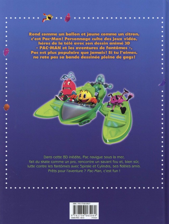 Résumé: On ne change pas une équipe qui gagne ! Pac-Man retrouve ses meilleurs amis, Spirale et Cylindria, pour combattre les fantômes qui déferlent sur Pacworld. Une BD pleine d'action composée de plusieurs histoires et de gags. Un cocktail parfaitement dosé où se mélangent pac-gommes et batailles mémorables, virées en skate ou sous la mer, humour et méchants, gaffes et déjeuners sympas ! Pac-Man, c'est fun !