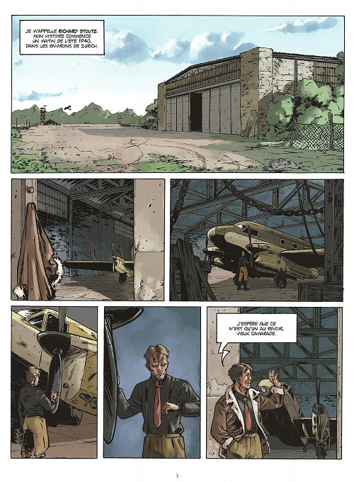 Avec un pré requis pareil je m'attends à une histoire humaine forte. Hélas, je reste un peu frustré, parce qu'elle n'est pas au rendez vous. Tous les ingrédients sont pourtant là dans le scénario ; mais la "mise en dessin", le découpage des scènes et donc le rythme ne sont pas à la hauteur. Un vol de nuit qui tourne mal aurait peut être demandé plus de cases, un "les enfants ont eu très peur" aurait demandé des gros plans plutôt qu'un texte...