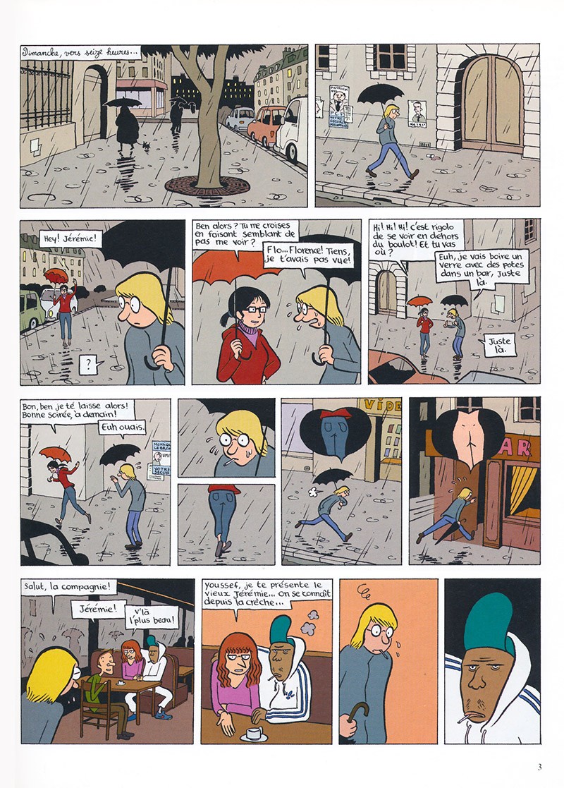 Très rapidement le héros, le "pauvre" Jérémie, suscite notre sympathie. On a l'impression de le connaitre (de le reconnaitre). Ses aventures basées sur les rapports amoureux ou plutôt, sexuels, sont effectivement risibles, subtiles, drôles. Entre lâcheté et ridicule, notre sympathique Jérémie accumule les gaffes (un Gaston moderne) pour notre plus grand plaisir.