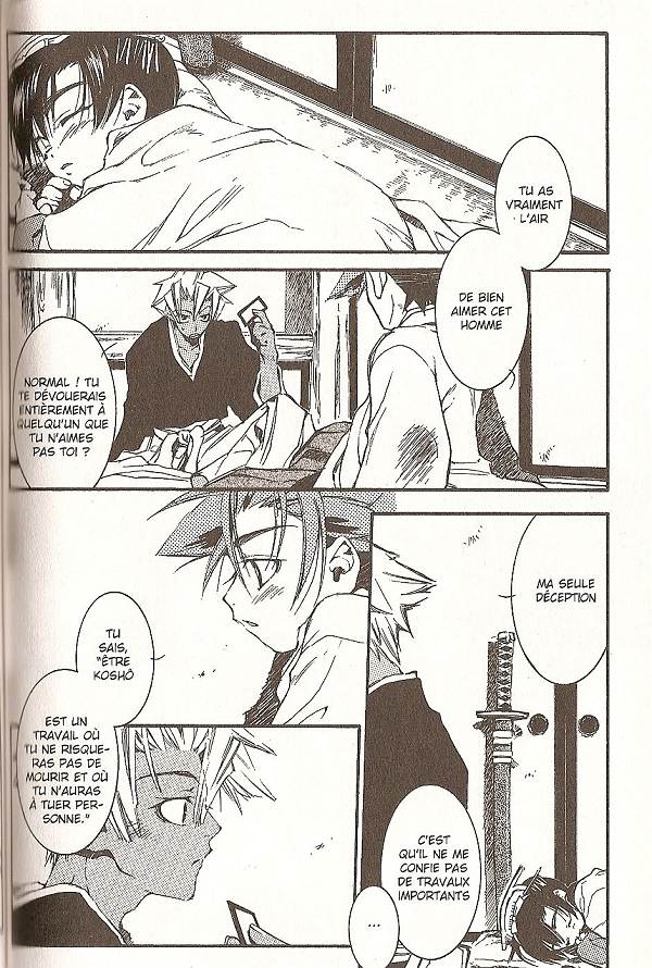 Résumé: Tandis que Tetsu se retrouve un peu par hasard dans le quartier des plaisirs et qu'il y retrouve la petite Saya, il va avoir l'occasion de rencontrer Suzu, le tosho de l'ennemi numéro un du Shinsengumi. Mais les deux garçons ne savent rien de leur statut respectifs...