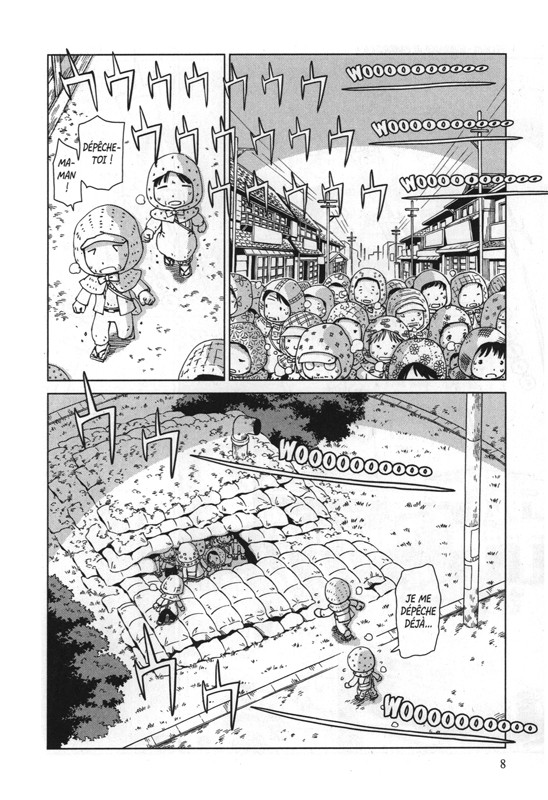 Résumé: Après avoir sauvé les jeunes enfants locaux, Tamaru, Yoshiki et Kosugi doivent trouver un nouvel abri, malgré l'antagonisme profond qui réside entre eux. Le volume pose définitivement l'ambivalence entre un Kosugi, aux reflexes égoïstes et qui préfère se cacher, Yoshiki, à la fibre patriotique et courageuse, et Tamaru, qui se laisse porter par des événements qu'il ne contrôle pas. Au-delà des différences de choix de vie, la question se pose : lequel des 3 survivra ?