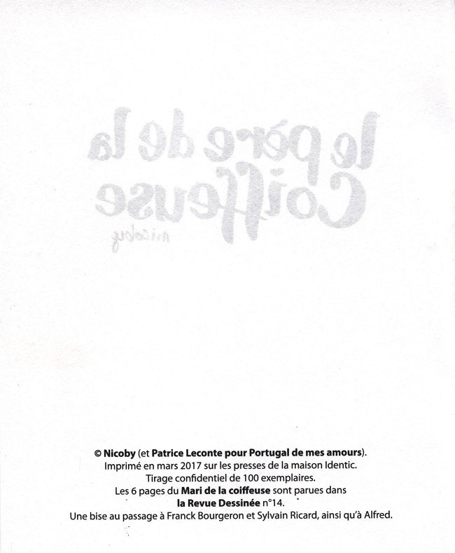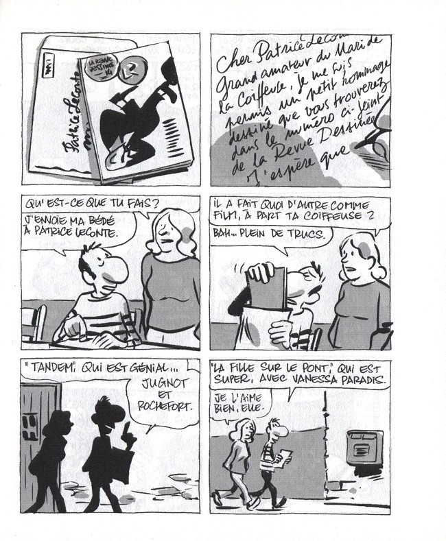 Résumé: Après avoir réalisé pour le magazine "La Revue dessinée" un récit sur le film de Patrice Leconte "Le mari de la coiffeuse", l'auteur rencontre l'ancien dessinateur devenu réalisateur.