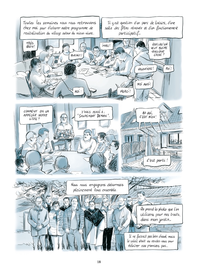 Le Petit Maire est la chronique de six années de mandat municipal, qui débutent par l'élection de 2020. À travers les affres et les joies du quotidien d'un petit maire, cette BD-reportage explore la vie d'une démocratie locale. Bienveillante, drôle, engagée, elle laisse parfois affleurer la lassitude de l'élu, mais rend surtout compte de l'envie de faire vivre le lien social et le vivre-ensemble. En allant à la rencontre des habitants de Saudemont et en arpentant le terrain, l'auteur et dessinateur Olivier Berlion en a saisi l'âme, qu'il restitue dans un récit où son style graphique se renouvelle totalement.