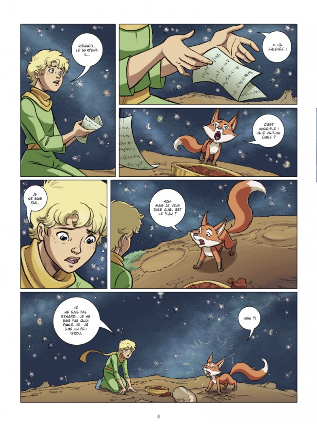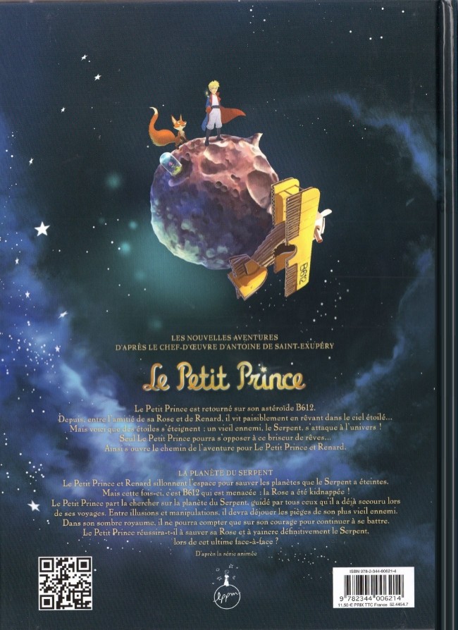 Résumé: Conclusion d'une fabuleuse aventure ! Le Petit Prince et Renard sillonnent lespace pour sauver les planètes que le Serpent a éteintes. Mais cette fois-ci, cest B612 qui est menacée : la Rose a été kidnappée !Le Petit Prince part la chercher sur la planète du Serpent, guidé par tous ceux quil a déjà secourus lors de ses voyages. Entre illusions et manipulations, il devra déjouer les pièges de son plus vieil ennemi. Dans son sombre royaume, il ne pourra compter que sur son courage pour continuer à se battre. Le Petit Prince réussira-t-il à sauver sa Rose et à vaincre définitivement le Serpent, lors de cet ultime face-à-face ?Avec ce dernier tome, l'épopée du Petit Prince en bande dessinée se conclut en apothéose ! Une formidable aventure éditoriale qui continuera longtemps de faire rêver petits et grands.