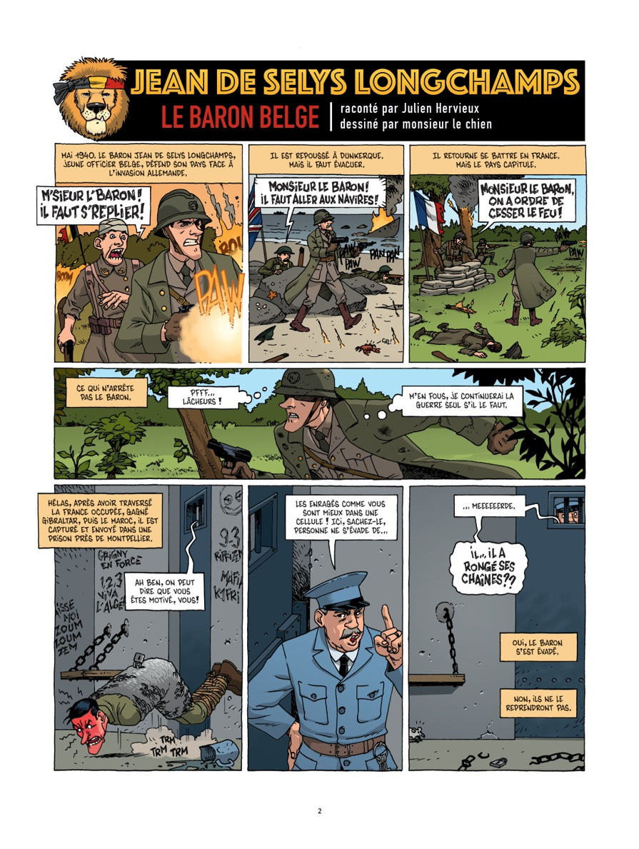 Tout d'abord, le scénariste évoque Léo Major, le Rambo québecois : un héros totalement tombé dans l'oubli mais toujours célébré les 14 avril dans la ville de Zwolle aux Pays-Bas, puisqu'il a libéré la ville à lui seul ! Un homme hors du commun qui revient dans la mémoire collective grâce au style inimitable des auteurs. Ce qui est également le cas pour Charles Nungesser et Le gurkhas Lachimann Gurung. Concernant ce dernier, son histoire est tellement incroyable qu'il a fallu tout le talent de Julien Hervieux pour dénicher des sources fiables et les mettre au service de son dessinateur (qu'il maltraite toujours autant dans les mises en scène des transitions). Il faut aussi mentionner le baron belge Jean de Selys Longchamps, dont une statue trône devant le siège de l'ancien QG de la Gestapo à Bruxelles qu'il a bombardé seul au manche de son avion, en désobéissant à ses supérieurs anglais. Le Petit théâtre des opérations se propose aussi de faire découvrir des équipages comme celui du Jules Verne, un avion de guerre français, ou encore celui du William.D.Porter qui a failli tuer le président Roosevelt !