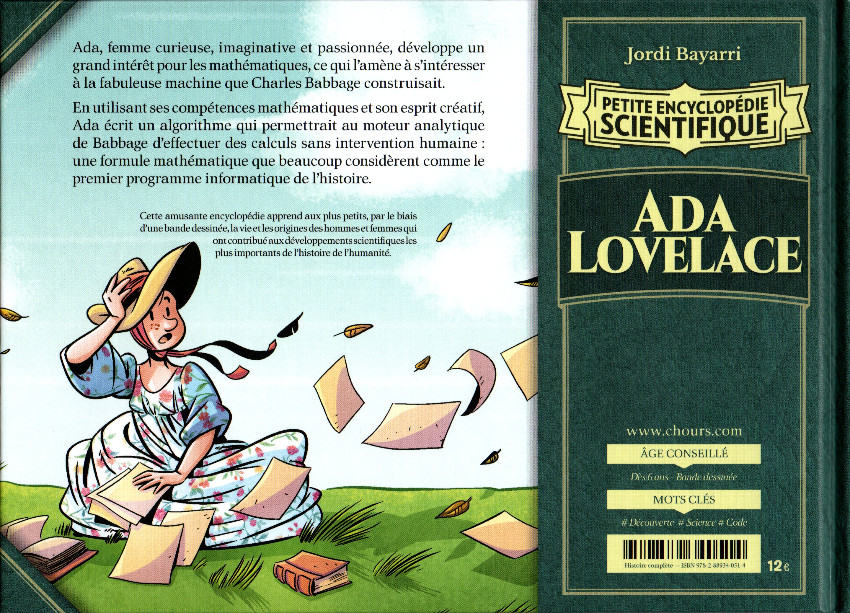 Depuis 2018, les éditions Chours publient, dans leur collection Petite encyclopédie scientifique, des récits d'une trentaine de planches, au format à l'italienne à destination des plus petits (six ans selon l'éditeur, mais mieux vaut tabler sur un peu plus pour une lecture autonome). Après Aristote, Darwin, Marie Curie ou encore Einstein, Jordi Bayarri s'intéresse cette fois à Ada Lovelace. Bien que peu connue du grand public, la scientifique est unanimement considérée comme la première à avoir conçu un programme informatique.