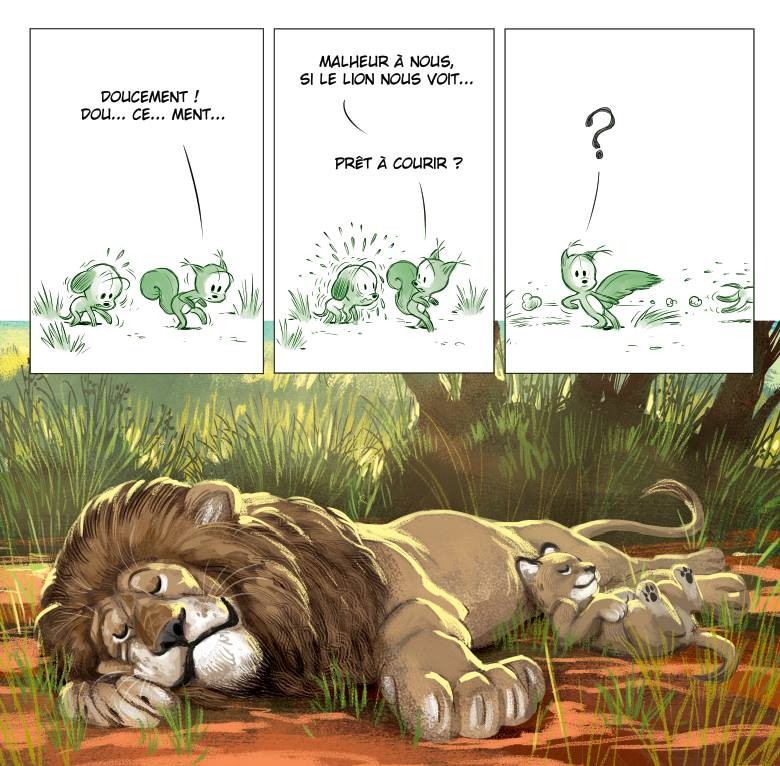 L’écureuil veut rendre visite à son cousin volant. Direction, la savane ! Le petit chien n’est pas très chaud, mais de là à abandonner son meilleur ami, certainement pas !