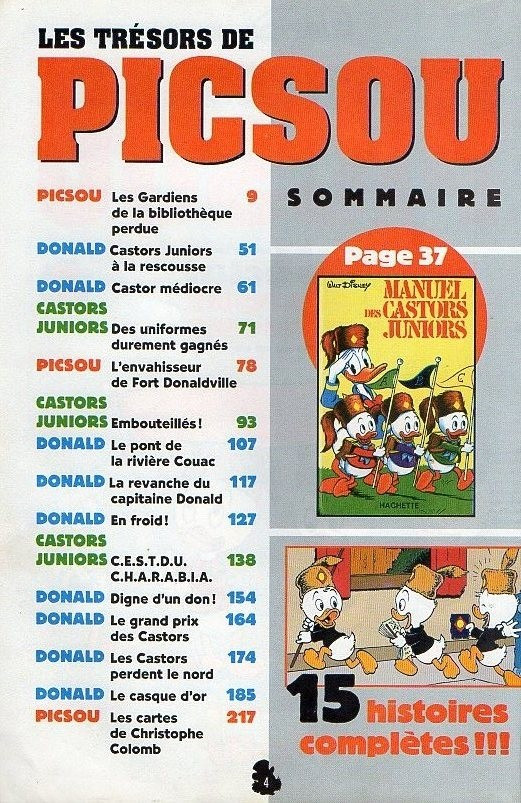 14 Donald : Le casque d’or (Barks, Carl Sc, D ) 15 Picsou : Les cartes de Christophe Colomb ( Don Rosa Sc,& D )