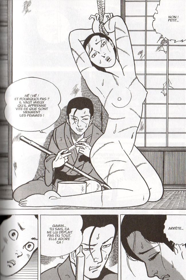 Ce premier tome de La plaine du Kantô, publié au Japon, en 1976 a beaucoup d’une œuvre initiatique, avec, selon toute vraisemblance, une bonne part d’autobiographie. C’est sur des rencontres que se joue ce qui est raconté : un voisin vénal, un ex-soldat marqué par ce qu’il a vécu, une femme qui lui sauve la vie, un illustrateur connu... L’habileté de l’auteur réside dans la manière dont il représente les réactions de l’enfant confronté au monde adulte et à ses déviances. S’il ne perçoit pas toutes les subtilités, il ressent parfaitement ce qui peut être incongru dans ce qui se passe autour de lui : il enregistre, voire encaisse, et s’en accommode. Cela est moins vrai dans sa relation avec ceux qui ont son âge, avec lesquels il peut être plus impulsif et laisse parler son cœur. Deux êtres qui n’ont rien de semblable lui servent de repères. D’un côté, son aïeul, figure de sagesse locale, sur lequel il peut se reposer. De l’autre, Ginko, sa voisine délurée, avec laquelle il peut partager. Si le vieil homme lui apporte l'apaisement, ce n’est pas le cas de la jeune fille.