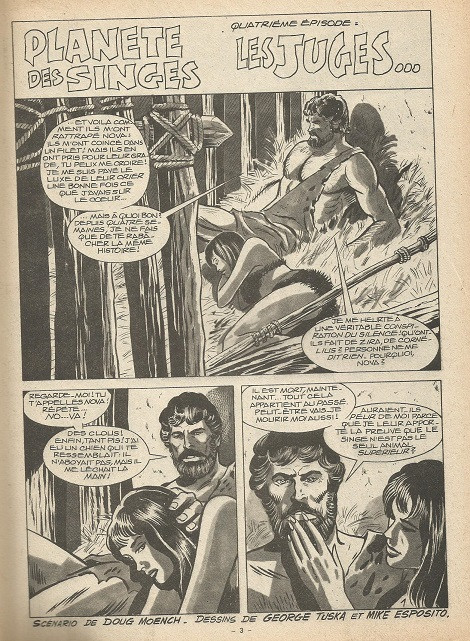 LA PLANETE DES SINGES : La meilleure partie de l'adaptation en BD du film est paradoxalement la plus statique : le procés de TAYLOR. Par contre les dessins de GEORGE TUSKA sont encore un point faible pour les singes.