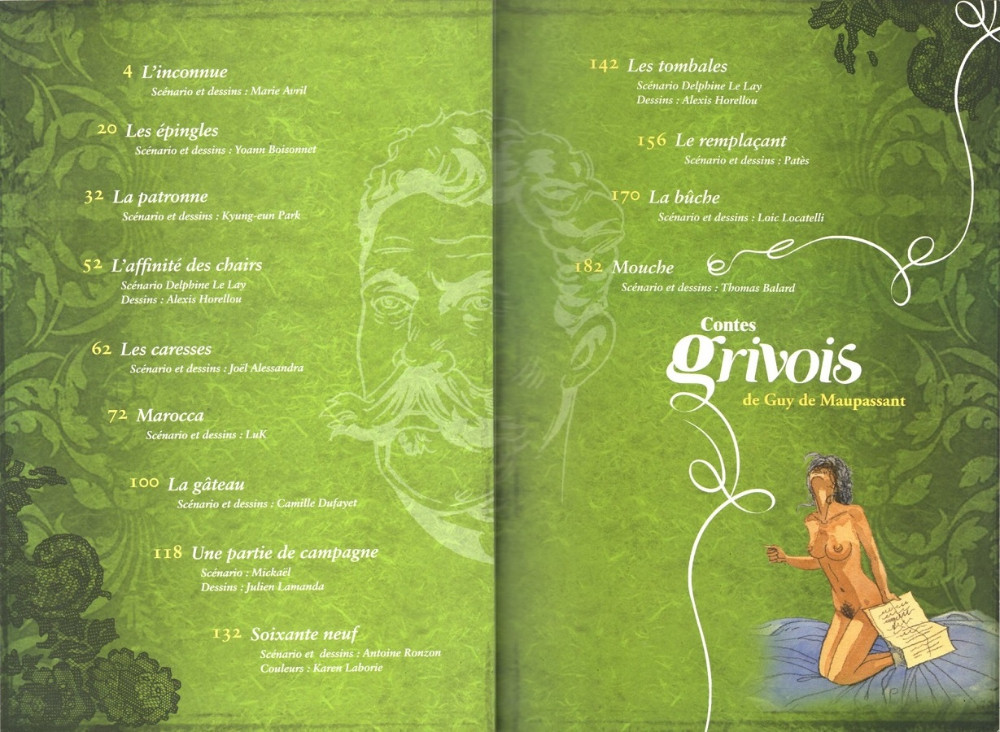 Résumé: Fraîches rives du fleuve, salons capiteux du Beau Monde, alcôves du demi-monde ou fringants bordels de province, en treize contes librement adaptés, les auteurs de bandes dessinées rendent un hommage grivois à Guy de Maupassant. Osés, parfois salés, toujours légers, coquins sans aucun doute, gaulois ou polissions, toujours drôles, parfois émouvants, les récits de ce recueil canaille sont à dévorer comme on poserait un baiser leste sur une joue bien rouge...