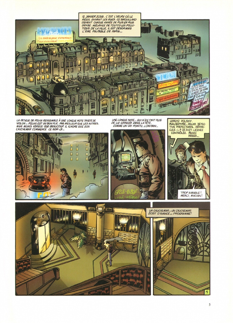 Polka est un thriller futuriste sans grand intérêt au niveau de l'intrigue. La vision de cette société du futur pourrait paraître intéressante mais elle n'est demeure pas moins basée sur des idées simplistes sans faire place à la nuance. Un exemple : si on n'a plus de carte magnétique, on n'existe plus pour la société. C'est trop exagéré dans le concept même si on voit où l'on veut en venir. Par ailleurs, j'aime bien quand les auteurs ont une vision qui se révèle exacte par la suite. Le scénariste a écrit cette histoire en 1995 et cela est censé se passer vers 2038 en France. J'aime bien regarder les petits détails. A un moment, j'ai souri lorsqu'il était évoqué la chute du prix du pétrole et des matières premières. Bref, vous l'aurez compris, les auteurs n'ont absolument pas eu une approche visionnaire. Même le graphisme paraît quelconque dans cet ensemble. Tout sonne faux, rien n'est crédible.Le 12/12/2003 à 21:25:55