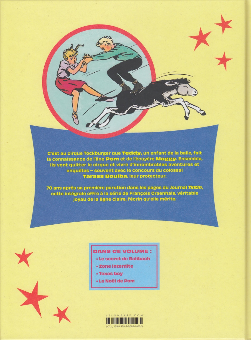 Info édition : Marqué "Première édition". Dossier introductif de Patrick Gaumer (16 pages). Chaque tome est introduit par un résumé des parutions antérieures (en magazine et en album) et par une reproduction de la couverture originale en format réduit. Contient les tomes suivants : "Le secret de Balibach", "Zone interdite" et "Texas boy" (qui groupe les histoires "Alerte à Hollywood" et "Plein feu sur Teddy"). Contient aussi l'histoire courte "Le Noël de Pom" (2 planches) parue dans le journal Tintin belge en décembre 1960.