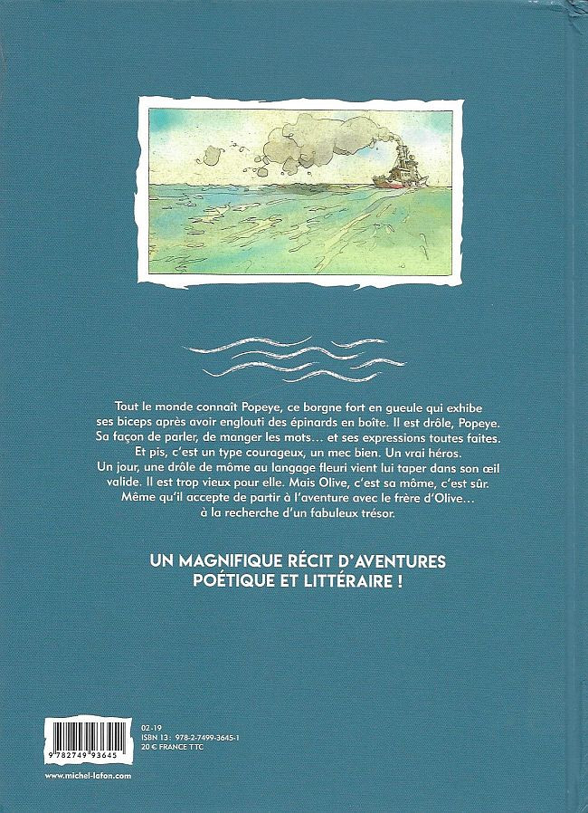Déjà , c'est un treau beau livre , avec une couverture douce au toucher ; ensuite , Popeye est un peu le heros de ma jeunesse , quand on regardait les dessins animés à la télé . Donc , quand je lis cette bd , je plonge un peu 45 ans dans mon passé ; Et c'est tres agréable .....Je suis bien sûr d'accord avec les avis déjà écris sur ce site par Philogene et philjimmy