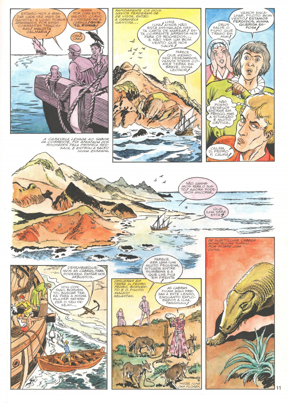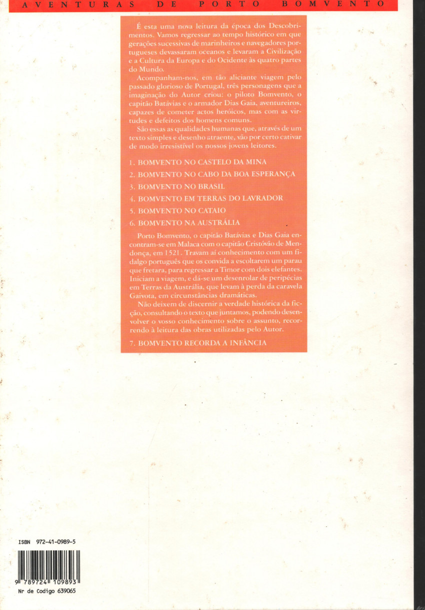 Résumé: Os três companheiros encontram-se em Malaca com o capitão Cristóvão de Mendonça, em 1521. Travam aí conhecimento com um fidalgo português que os convida a escoltarem um parau que fretara, para regressar a Timor com dois elefantes. Iniciam a viagem, e dá-se um desenrolar de peripécias em Terras da Austrália, que levam à perda da caravela Gaivota, em circunstâncias dramáticas.