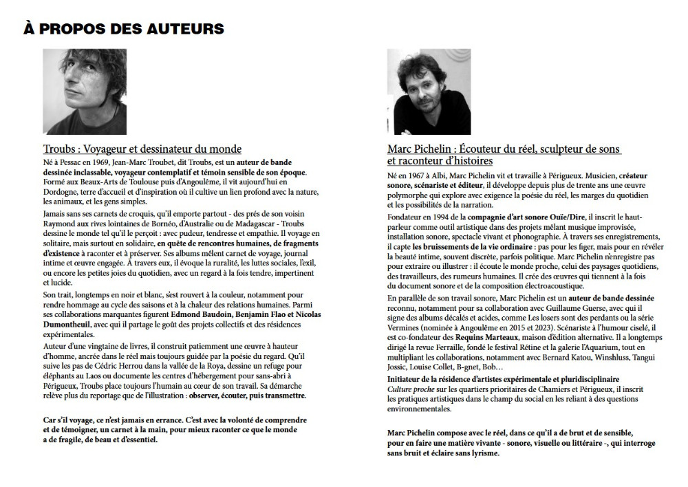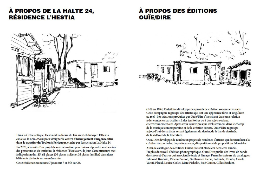 D'octobre 2020 à janvier 2025, Marc Pichelin et Troubs sont allés régulièrement observer le fonctionnement de ce lieu. Ils ont rencontré les résidents et résidentes et ont suivi les membres du personnel dans leur travail journalier.