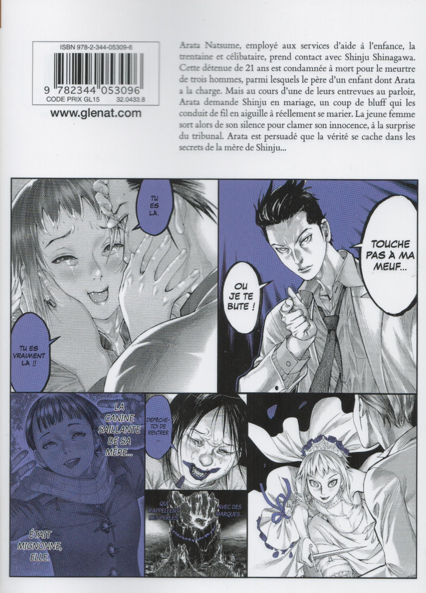 Résumé: Arata Natsume, employé aux services d’aide à l’enfance, la trentaine et célibataire, prend contact avec Shinju Shinagawa. Cette détenue de 21 ans est condamnée à mort pour le meurtre de trois hommes, parmi lesquels le père d’un enfant dont Arata a la charge. Mais au cours d’une de leurs entrevues au parloir, Arata demande Shinju en mariage, un coup de bluff qui les conduit de fil en aiguille à réellement se marier. La jeune femme sort alors de son silence pour clamer son innocence, à la surprise du tribunal. Arata est persuadé que la vérité se cache dans les secrets de la mère de Shinju…