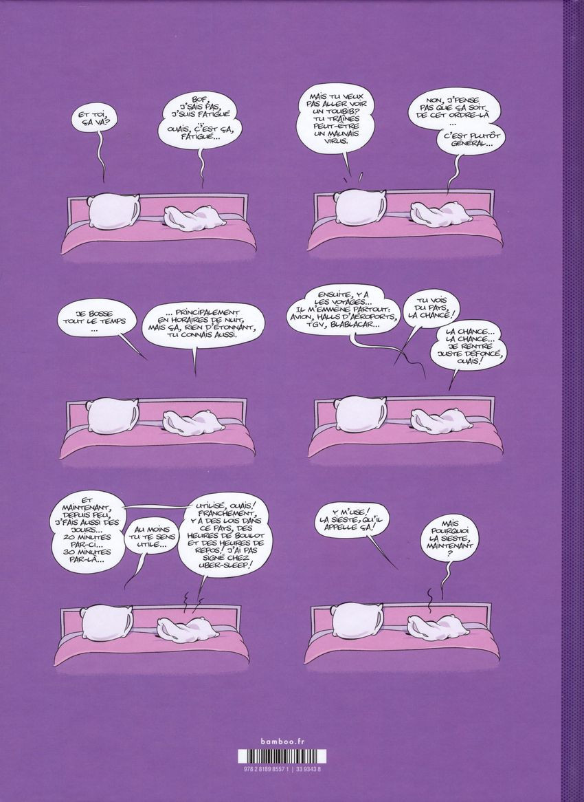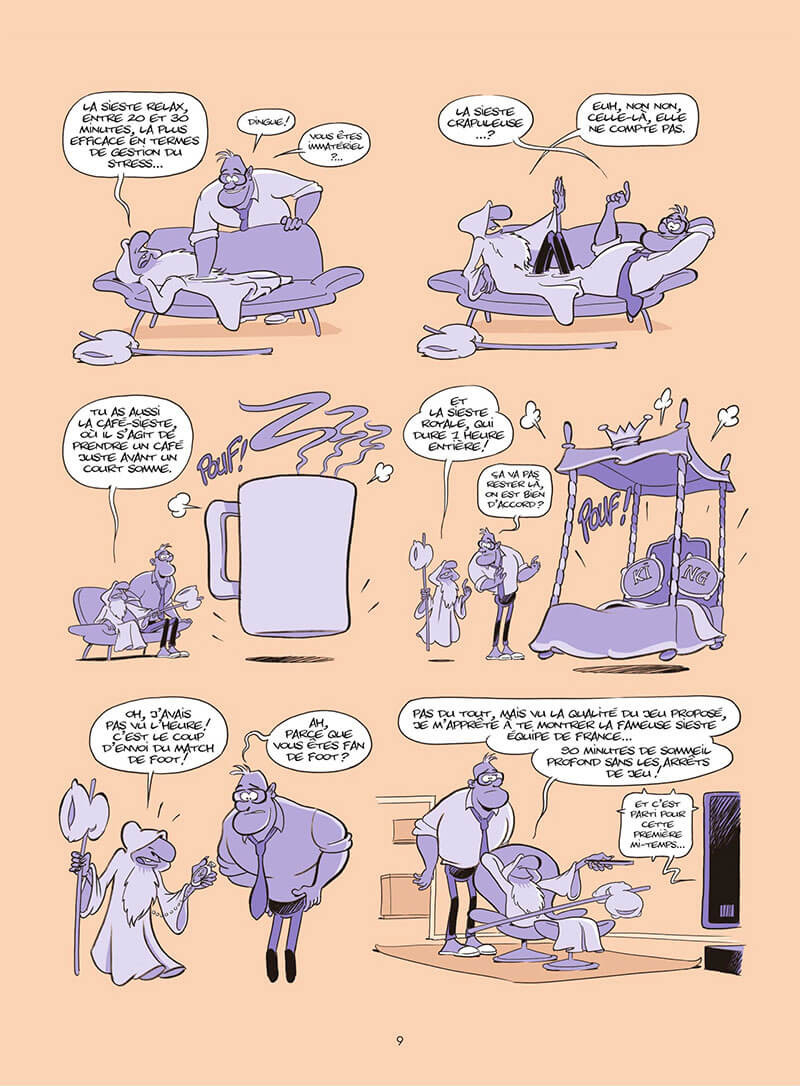 Qu'elle dure quelques minutes, une heure ou deux, qu'elle arrive à l'improviste devant le journal télévisé ou qu'elle soit organisée sur un transat, la sieste devrait être obligatoire. D'ailleurs, les spécialistes sont tous d'accord : elle est antistress, elle permet au cerveau de performer et elle apporte un regain d'énergie. Tout comme cette BD dans laquelle les auteurs ont tout donné pour tester et éprouver les différents types de siestes ! Un album reposant... sauf pour les zygomatiques ! Inclus : un cahier supplémentaire.