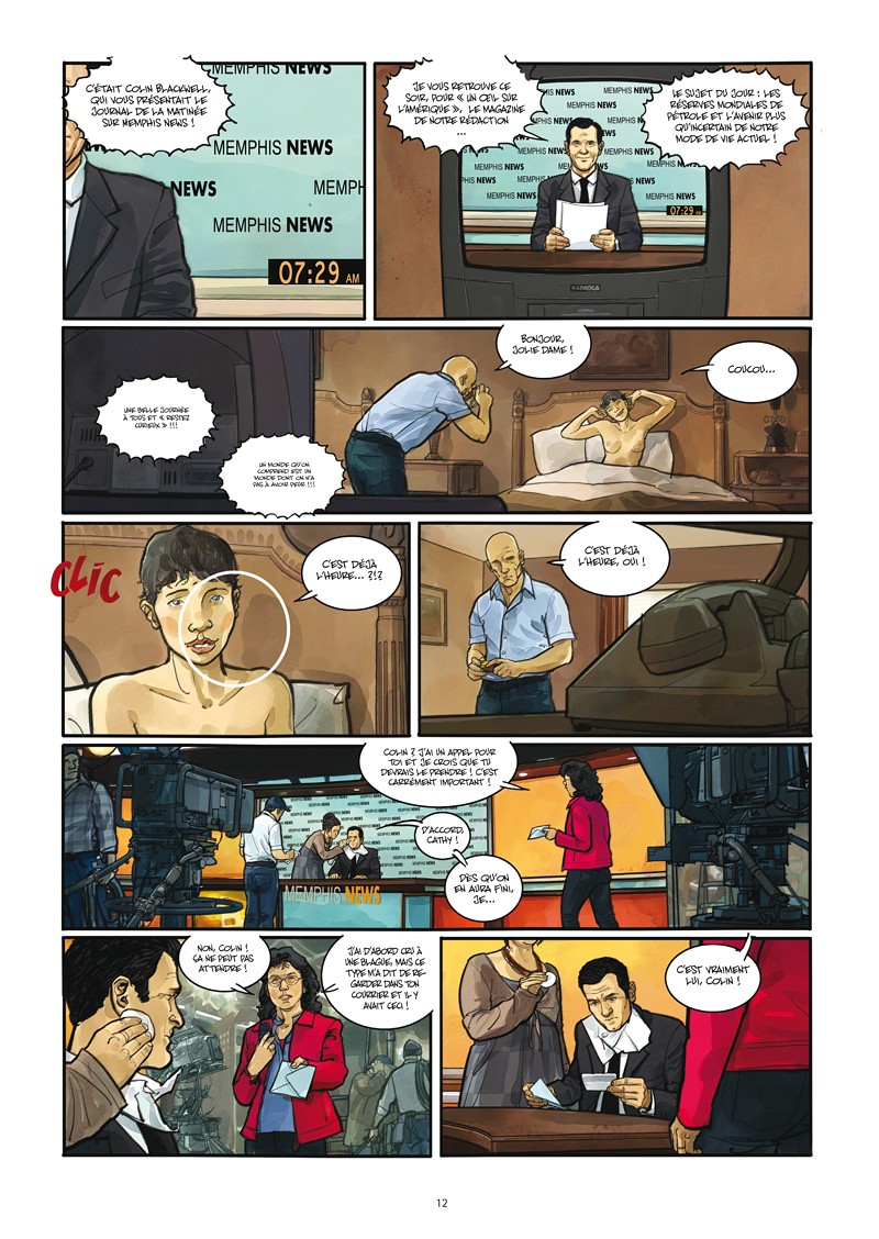 Organisé en chapitres, cet album commence fort, plantant clairement le décor de ce qui devrait constituer le cœur de l’intrigue à venir : un homme aux abois face au complot des puissants. Les balises d’un thriller politico-social sont posées et semblent en ordre de marche pour livrer un récit efficace, tant ce premier tome entre immédiatement dans le vif du sujet et ne s’éparpille pas outre mesure dans de multiples directions. Cette apparente simplicité, un certain sens du rythme, et une bonne cohérence d'ensemble rendent la lecture tout aussi fluide que prenante. Seule véritable ombre au tableau, une scène dispensable et proche du racolage sur la fin. Fort dommage, Le pouvoir des innocents n’avait pas eu à user de tels subterfuges pour cartonner. Au dessin, c’est David Nouhaud qui opère, sur une mise en scène de Laurent Hirn (c’est annoncé comme cela) dont il a su s’approprier le trait et la colorisation de manière assez impressionnante, ce qui contribue à l’immersion totale dans l’univers de la série mère.