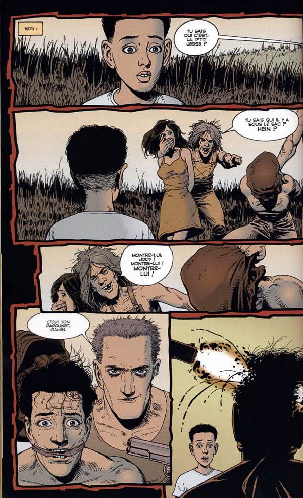 Concluant ce qu’il est autorisé d’appeler un premier cycle, en traitant un second et en ouvrant un troisième, ce deuxième recueil rassure sur la capacité des auteurs à rebondir. La première partie constitue une véritable ode à la famille et se vautre dans la boue d’un Texas qu’elle ira sonder jusqu’à ses moindres recoins, proposant ainsi une alternative locale au petit Gregory sorti de son cercueil par B. Poelvoorde dans C’est arrivé près de chez vous. La seconde s’ébat joyeusement dans la fange de San Francisco, pervertie par le fric et le vice. Ce sera l’occasion ou jamais de faire connaissance avec ce mythe, bienfaiteur du zoo local, dont rien que le nom donne à rêver : Jésus de Sade. Si la dernière se situe clairement un ton en-dessous, c’est selon toute vraisemblance parce qu’elle n’est composée que d’un épisode (le dix-septième) qui fait office de transition pour mener le trio de l’apocalypse, ô joie, vers l’hexagone... Cependant, ce choix d’éditeur qui consiste à isoler un chapitre, sans doute dans le but de maintenir son lectorat sous pression, peut paraître dans le cas présent discutable et casse quelque peu le rythme initié dans les seize premiers. C’est un peu dommage, même s’il s’agit de faire piaffer d’impatience l’amateur quant à l’angle d’attaque choisi par Ennis et Dillon pour sortir la France de sa léthargie pré-troisième millénaire