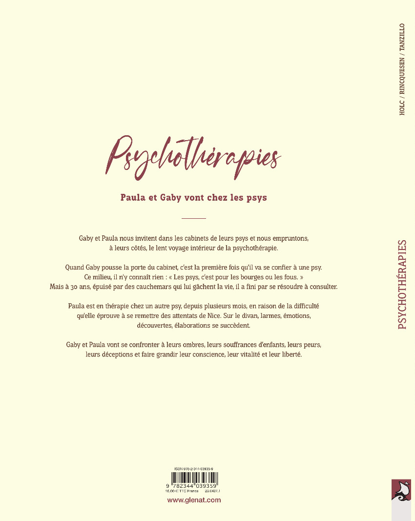Aller faire une psychothérapie, c’est soit pour les fous, soit pour les bobos pour la plupart des individus. Du coup, ce n’est pas très facile de franchir la porte d’un cabinet. C’est ce que vont pourtant faire deux protagonistes parisiens Paula et Gaby (une femme et un homme) chez un psy différent. On va alors découvrir tout un cheminement qui va leur permettre de parcourir des épreuves de la vie. Il y a tout d’abord les blessures de l’enfance qui resurgissent dans le présent adulte et qui conditionne certains de nos choix pas forcément parmi les plus judicieux. Les gens qui vont voir des psys ne sont ni fous, ni des bobos mais de simples personnes qui désirent avancer dans la vie et être plus heureux en effectuant un traitement par des moyens psychologiques. C’est un chemin intime et interne qu’il convient de faire en bavardant dans ces séances plutôt courtes mais qui peuvent s’étaler dans le temps sur plusieurs semaines ou plusieurs années. Personnellement, je trouve ce type de démarche plutôt saine ce qui provoque un intéressement sur ce sujet où il est question de soigner ses douleurs intimes et ses souffrances. Trouver un moyen de surmonter ses problèmes permet d’avancer sur la bonne voie dans la vie. Il s’agit d’induire un changement positif dans notre existence malgré les doutes qui nous assaillent. Tout un programme ! Un mot sur le dessin pour dire qu’il y a une véritable précision du trait admirablement mise en valeur par une colorisation réussie. Sur la forme, rien à redire mise à part un format sans doute trop petit. J’ai bien apprécié ce récit qui parvient de joindre les deux bouts de manière assez magistrale. A la fin de la lecture, on se rend compte de tous les bénéfices de faire une psychothérapie. Il faut juste essayer de croire que c’est toujours le ticket gagnant ce dont je doute sincèrement car il n’y a pas toujours des happy end. Cela dépend parfois de la compétence du thérapeute qui ne sera pas mis en cause dans cette œuvre censée les promouvoir. En conclusion, c’est une très belle lecture qui nous plonge dans les méandres psychologiques de la vie et qui peut trouver un certain écho. C’est également traité avec tout le sérieux qu’il convient ce qui diffère du traitement habituel. Une lecture marquante dont on peut ressortir indéniablement changée.BDGest 2014 - Tous droits réservés