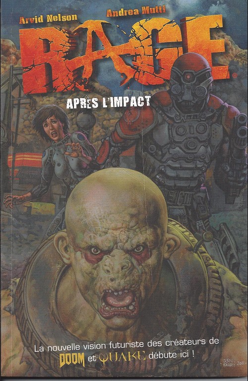 Ce comics est écrit par Arvid Nelson, l'auteur de Rex Mundi et dessiné par Andrea Mutti, bien connu des fans de bd franco-belge (Le syndrome de Caïn, SAS...). C'est une nouvelle vision futuriste des créateurs du jeu vidéo Doom et Quake. Ce comics est une sorte de préquel au jeu Rage et ne devrait ravir que ses fans. Le scénario part sur un postulat assez intéressant sur le papier mais concrètement, cela n'amène à rien. C'est très pauvre du côté de l'intrigue à savoir un monde où s'affrontent mutants, rebelles et soldats impitoyables. Je suis un peu sidéré par ce vide intersidéral. Cela se lit très vite d'autant qu'il n'y a pas beaucoup de pages à feuilleter.BDGest 2014 - Tous droits réservés