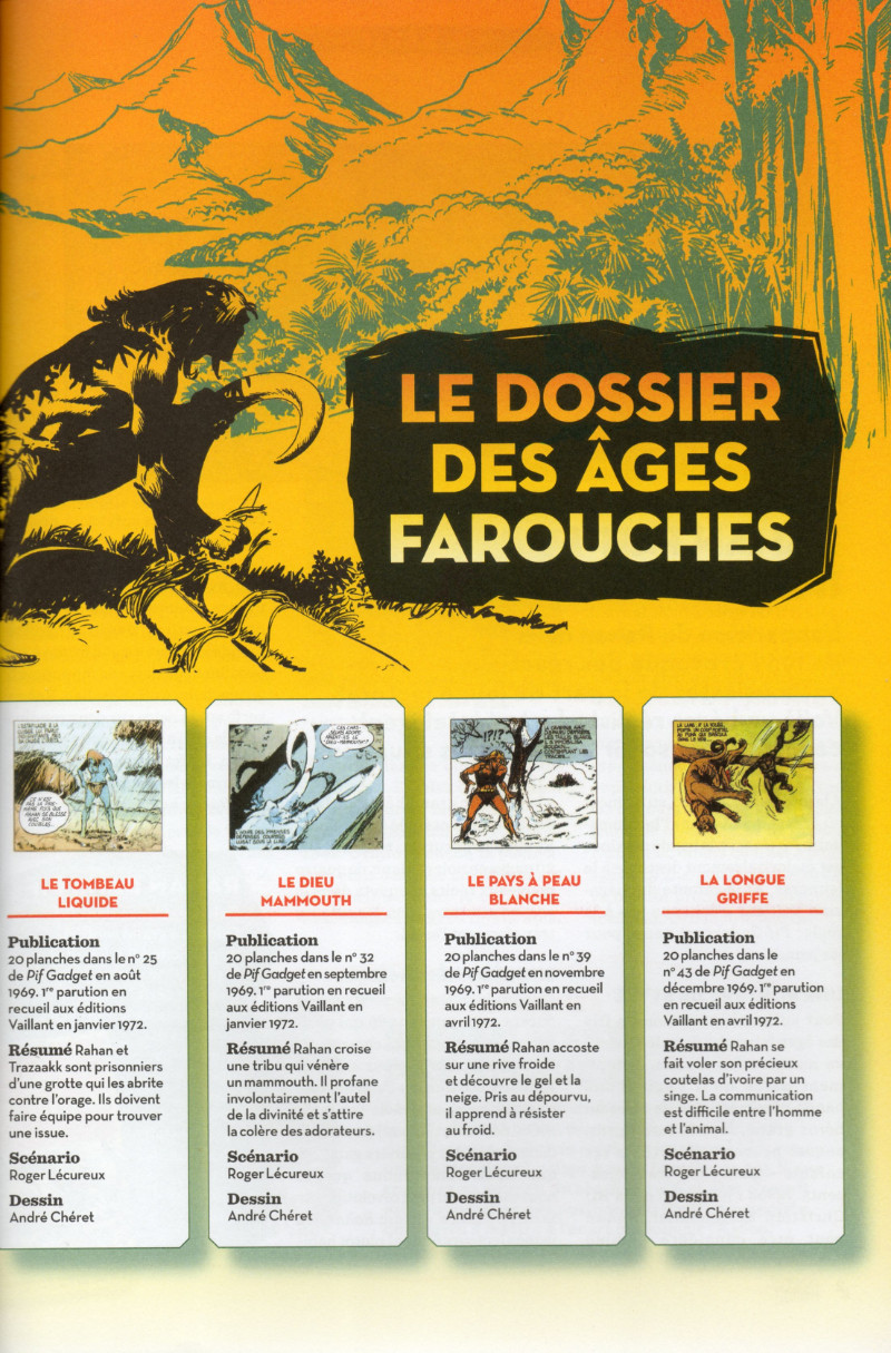 Collection Rahan édition anniversaire 50 ans. Cette collection comprend l’intégrale des planches de Rahan parues à date dans l’ordre chronologique original. En fin d'album un cahier de 12 pages exclusives.