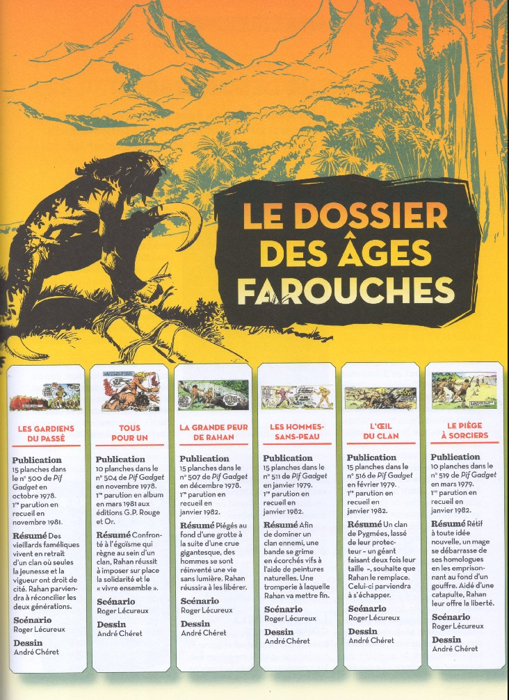 Collection Rahan édition anniversaire 50 ans. Cette collection comprend l’intégrale des planches de Rahan parues à date dans l’ordre chronologique original. En fin d'album un cahier de 14 pages exclusives