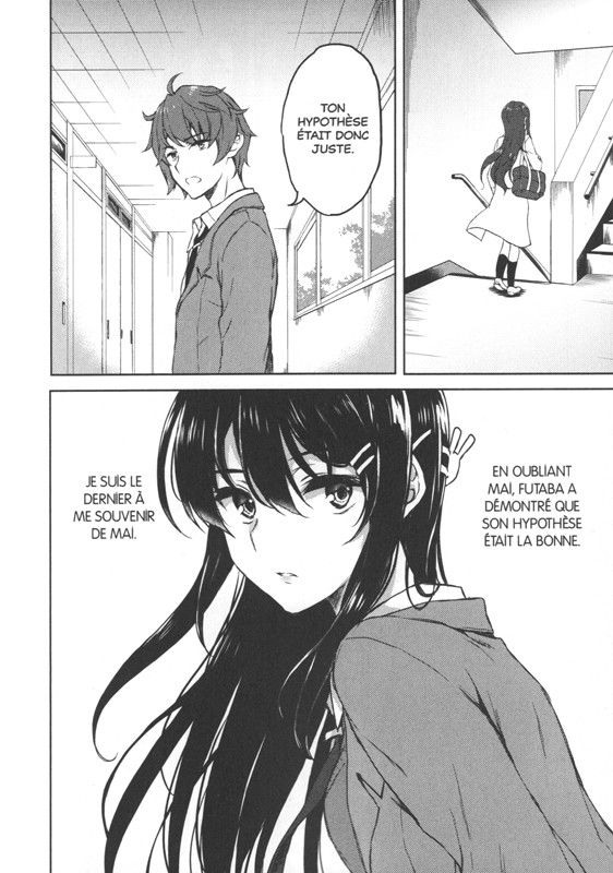 Résumé: Sakuta Azusagawa est un lycéen en première un peu étrange. Un jour, alors qu’il se trouve à la bibliothèque, il y aperçoit une jeune fille déguisée en bunny girl que personne d’autre ne semble remarquer. Il s’agit en réalité de Mai Sakurajima, une jeune actrice connue dans tout le pays qui se trouve être également une des élèves de l’école de Sakuta. À force de discussions, ce dernier va bientôt comprendre que derrière ce costume se cache un problème beaucoup plus profond qui parasite la vie de cette lycéenne. Dans cette ville coincée entre le ciel et l’océan, le rideau s’ouvre sur une étrange histoire d’amour entre les deux adolescents.
