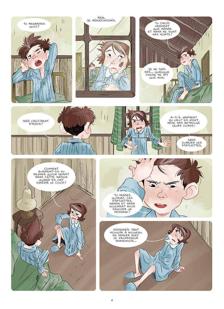 Résumé: Plein de questions bourdonnent dans la tête de Ashley et Joyce. Qui a volé les cinq statuettes de la maison de oncle Markus et tante Zelda ? Qui a tué le professeur Persepolis ? Qui est le personnage mystérieux qui essaie de les aider ? Est ce que leurs parents sont morts pour de vrai ? Pas une seule réponse, mais une seule certitude : Rien n’est comme il semble.