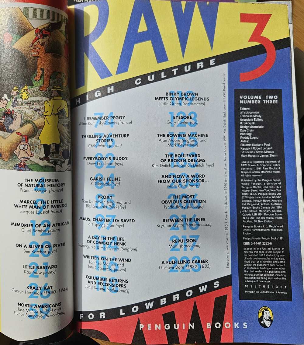 - Info édition : Front cover by R. Crumb, inside front by art spiegelman, inside back by Kim Deitch, back cover by David Sandlin. 25 stories.
