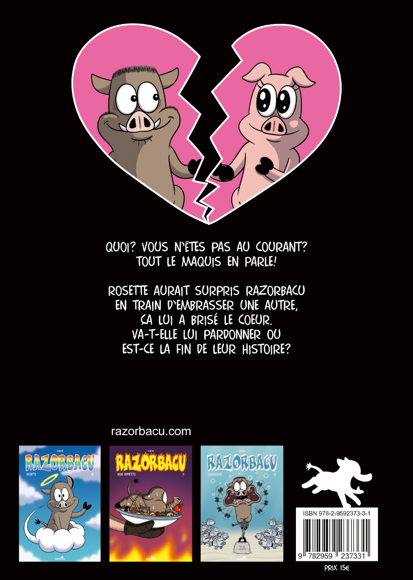 Quoi ? Vous n'êtes pas au courant ? Tout le maquis en parle ! Rosette aurait surpris Razorbacu en train d'embrasser une autre, ça lui a brisé le cœur. Va-t-elle lui pardonner ou est-ce la fin de leur histoire ?