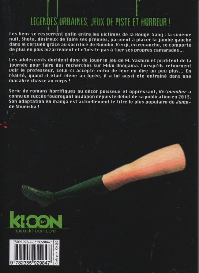 Résumé: Convaincus qu'il suffit de fuir Haruka pour éviter une nouvelle partie de "chasse au corps", les six adolescents désignés ont tôt fait de déchanter, car la jeune fille les poursuit sans répit, de manière tout sauf naturelle. Impossible de lui échapper ! Heureusement, la deuxième nuit, Takahiro découvre le bras droit de Haruka dans le bureau du proviseur, donnant une lueur d'espoir à ses camarades. Mais Shota a sacrifié Kenji et Rié pour survivre plus longtemps, et les autres ne lui font plus confiance. Ils lui ordonnent alors de se racheter en tuant Haruka pour mettre fin à la malédiction !