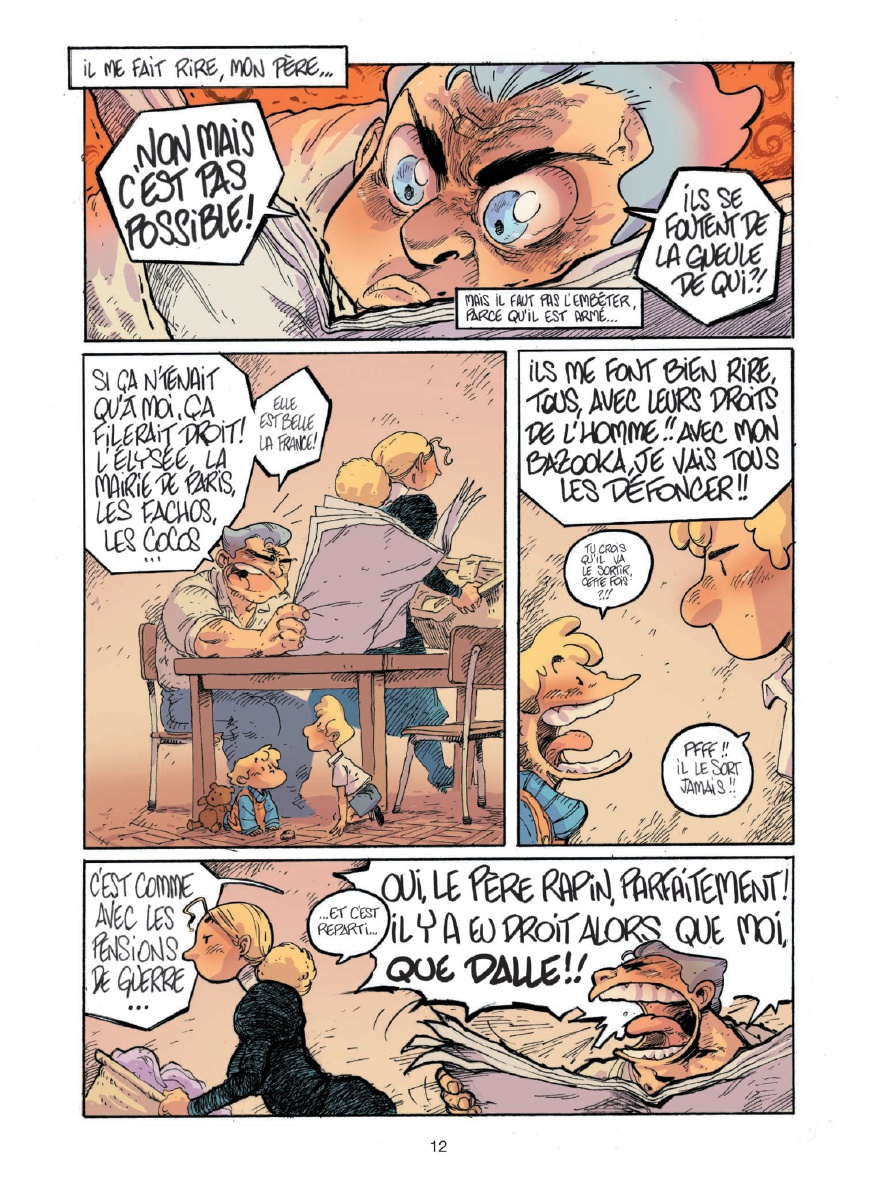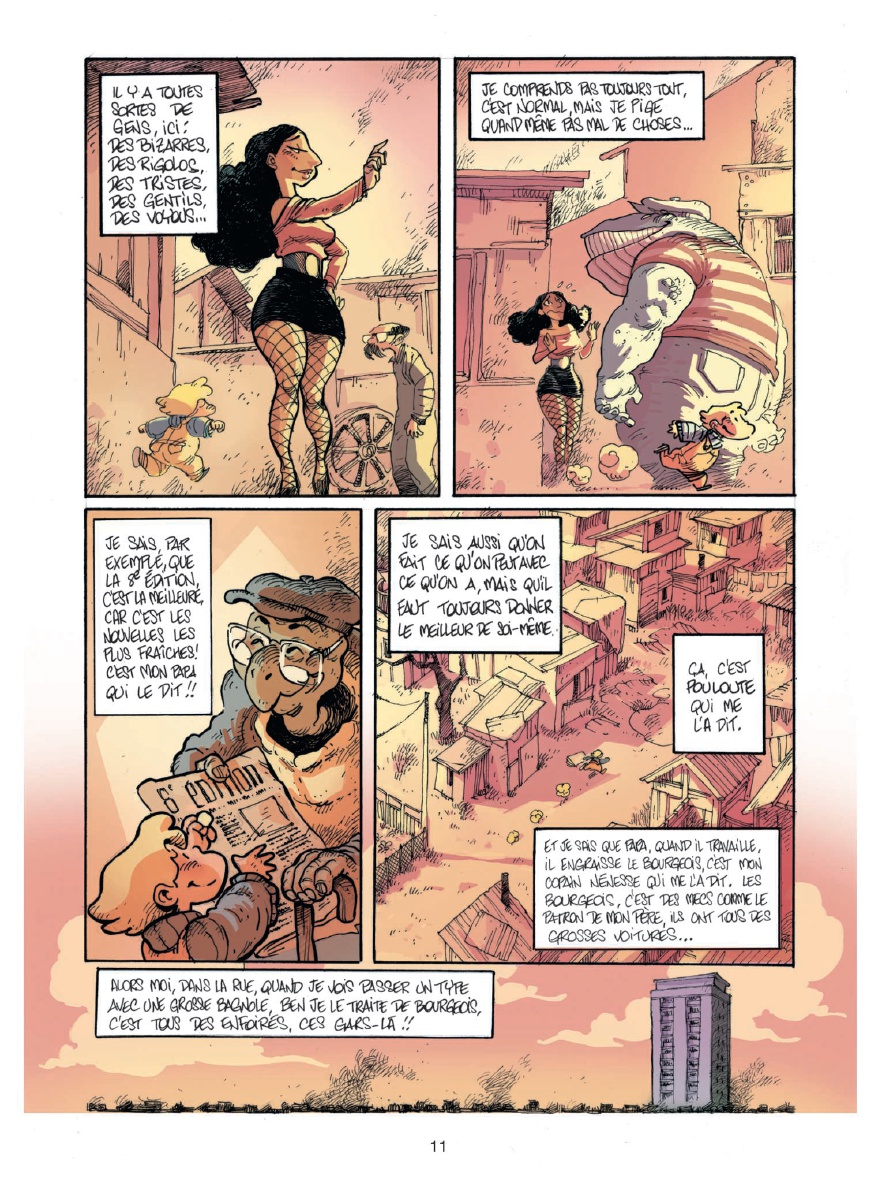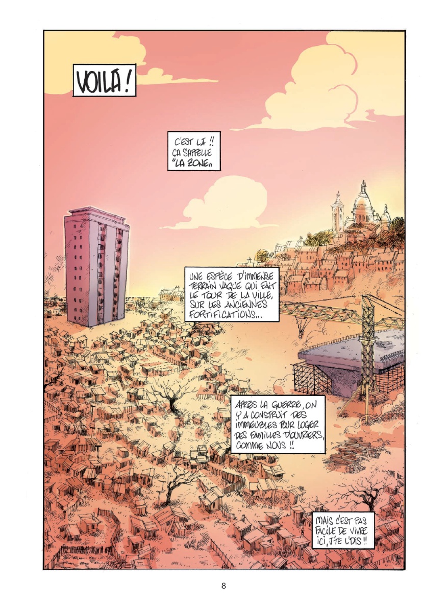 Résumé: Salut, moi c'est Bibi ! J'ai 5 ans ! Ou 8... Je ne sais pas vraiment... Ce dont je suis sûre, c'est que ma vie, c'est un sacré bordel ! D'abord, y a la zone. Une sorte de grand terrain vague où les gens pas riches comme nous s'entassent. On s'y amusait bien, avant la construction du périphérique... Moi, le périph, je l'ai vu grandir ! Après, y a mes copains : Nénesse, le clochard fantastique, érudit et anarchisse ; Pouloute, la grand-mère que j'ai jamais eue ; M'sieur Muguet, l'aveugle au grand coeur...