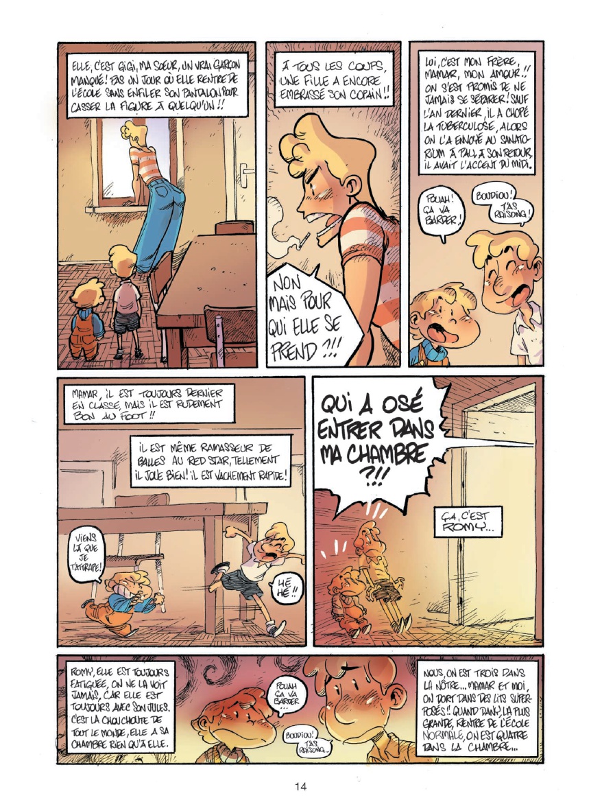 Ensuite, ma famille. Mon père, il me fait rire. Il revient de la guerre, il connaît tous les discours de Napoléon et les déclame devant sa glace. Ma mère, c'est Madame Métro, tout le monde la connaît parce qu'elle est chef de station au métro Pigalle. Mamar, mon frère, complice de tous mes jeux et de toutes mes bêtises (mais j'en fais pas tant que ça). Et puis, il y a tous les autres...