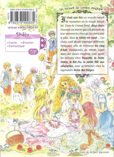 Il était une fois un monde rempli de royaumes où la magie faisait loi. Dans le Grand Nord, deux chats trouvent un miroir qui a le pouvoir de leur montrer les êtres qu'ils chérissent le plus. Mais le miroir est cassé... Les chats vont devoir arpenter différents royaumes afin de retrouver les cinq éclats manquants du miroir, logés dans des coeurs meurtris. Leur quête les mènera, chez Poucelina, la Petite Sirène, le Roi Nu, la petite fille aux allumettes, pour se terminer chez la légendaire Reine des Neiges.