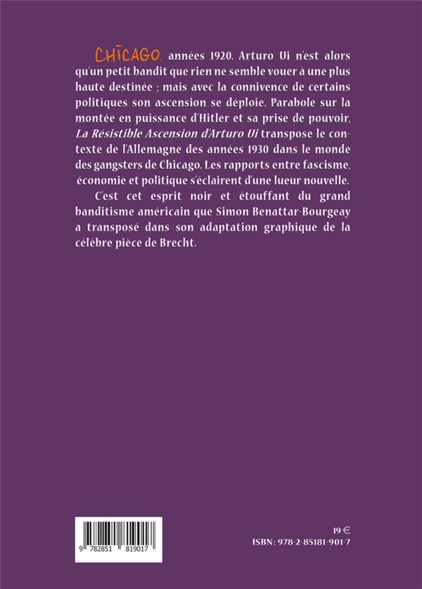 Résumé: Simon Benattar-Bourgeay, né en région lyonnaise en 1988, est comédien et illustrateur. Il a découvert l'oeuvre de Brecht sur les planches. Tout en jouant sur scène et dans des courts-métrages, il s'inscrit aux cours du soir à l'École Émile Cohl de Lyon. En 2016, il réalise une adaptation en bande dessinée de «La Résistible Ascension d'Arturo Ui», la pièce des gangsters de Chicago, où se déploie une satire sur Hitler et sa bande.
