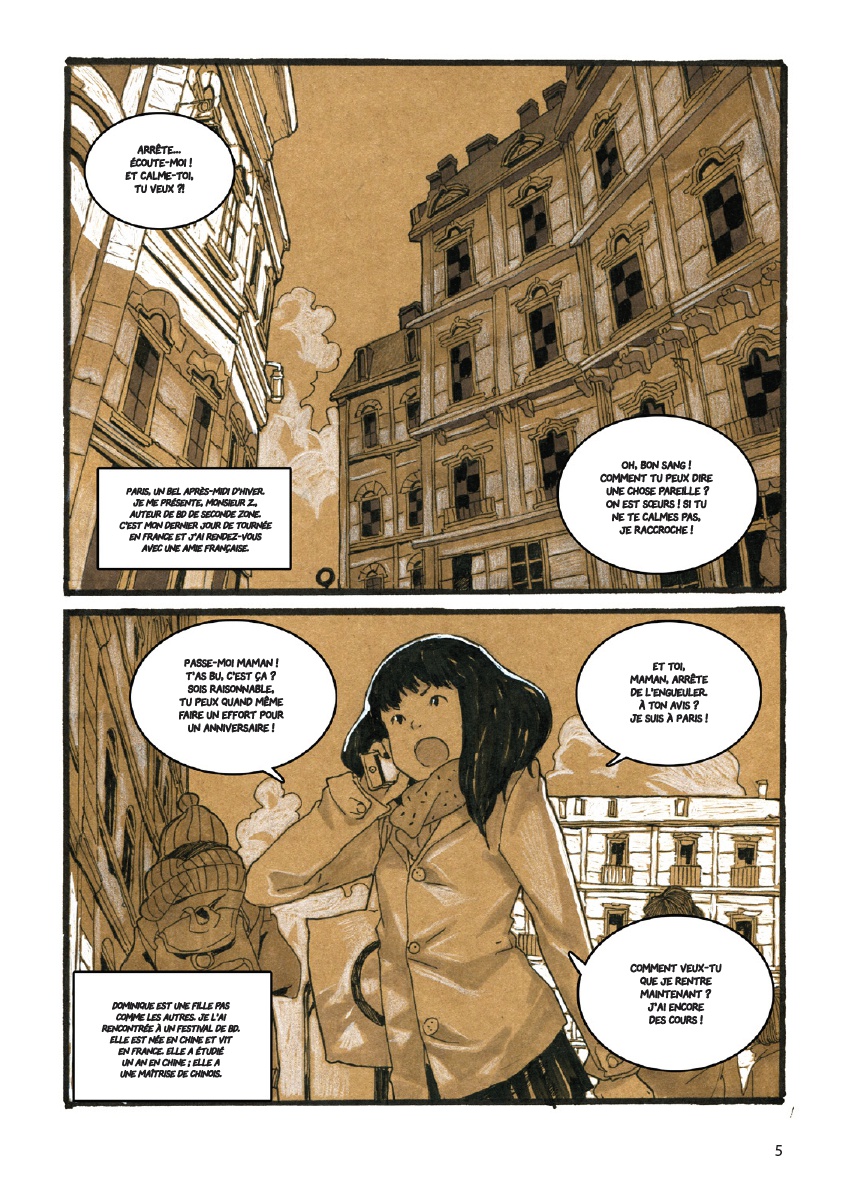 Et Claude Debussy dans tout ça ? L’album est évidemment muet, l'aura du compositeur se fait néanmoins fortement entendre. D’abord, simple évocation ou suggestion de bande-originale, ses notes et ses couleurs s’immiscent de plus en plus au sein de la mise en page pour finalement, à l’image de Fantasia (le célèbre dessin animé musical de Walt Disney), imposer leur force dans quelques planches de haute volée aux frontières de l’art abstrait. Zhao fait preuve d’un talent impressionnant en associant cette inspiration aux différentes thématiques et à ses propres souvenirs. Mieux encore, malgré l’éclatement des fils narratifs, leur assemblage demeure totalement cohérent. Le glissement continuel entre réalité et fantaisie est imperceptible tant il se fait naturellement.