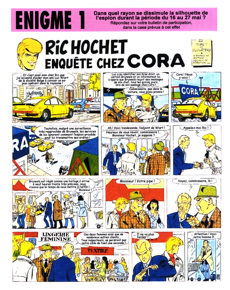 - Ric Hochet : Enquête à Cora, histoire en 9 planches, inédite en album sous forme de 9 énigmes, une pour chaque planche.