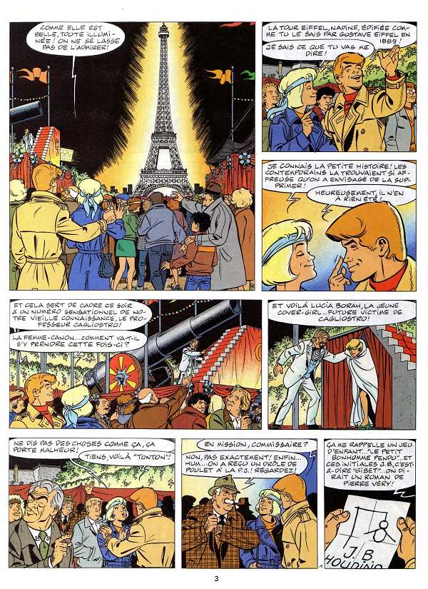 Résumé: Sous une Tour Eiffel brillant de tous ses feux, le magicien Cagliostro exécute son numéro d'illusionnisme avec la femme-obus. Alors que le coup de canon a retenti, son assistante et sa complice disparaissent mystérieusement. Un message représentant le jeu du pendu écrit par le dénommé Houbino présage un kidnapping en règle. Qui se cache derrière ces enlèvements crapuleux qui font suite à celui perpétré quelques jours plus tôt sur Monique Laniel et qui concerne de belles jeunes filles blondes ? Ric va devoir encore une fois faire don de sa personne pour faire tomber le ou les coupables, aidé pour la circonstance d'une brigade spécialisée et poursuivi lourdement par le paparazzi Lambert.