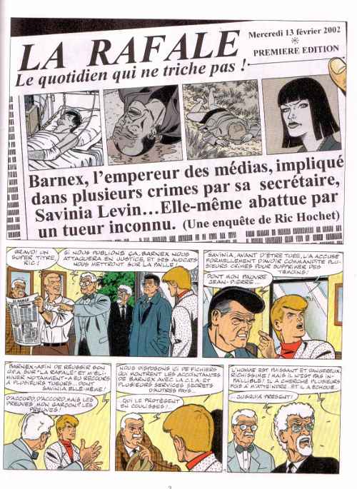Résumé: Le journaliste Ric Hochet est persuadé que Barnex, le roi des médias, est à l'origine d'une série d'assassinats liée au lancement d'une O.P.A. musclée sur le journal "La Rafale". Celui-ci, qui réfute publiquement ces allégations, est de son côté, dénigré par son associé de l'ombre, le Bourreau (B.), criminel notoire. Compte tenu de ce premier échec, B. décide de passer à l'étape supérieure de son plan démoniaque en faisant pression sur un pirate informatique, Deus. Ce dernier doit injecter sur le Web un virus mortel qui pourrait menacer directement les utilisateurs d'Internet.