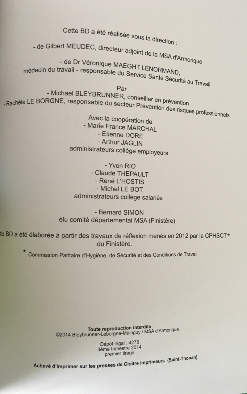 Album réalisé hors série et hors commerce et édité par la mutualité sociale agricole d’Armorique sur la prévention des risques Psycho-sociaux dans le monde agricole Offert dans le cadre de conférence ou autres manifestations