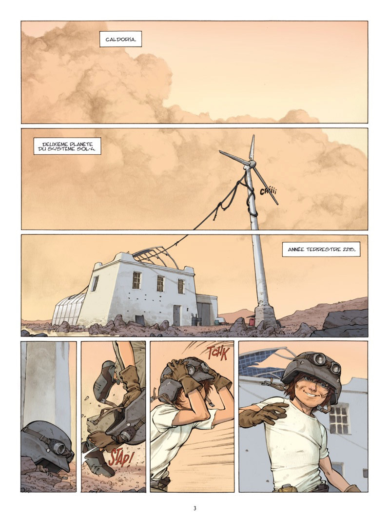 Rock & Stone démarre sur des bases très classiques : la destruction des hommes par les computer. Toutefois, le récit de Nicolas Jean se montre rapidement intéressant. Il y a tout d’abord cet étonnant Rocky dont les propos et les réactions intriguent. Ensuite, le scénariste prend le temps de livrer des informations sur le passé du garçon et sur les événements qui ont conduit la situation actuelle. Ces instants de révélation s’entrelacent avec l’action et une tension toujours présente. Le lecteur est embarqué dans une histoire rythmée aux personnages attachants, s’appuyant sur l’excellent travail de Yann Valéani. À travers une mise en pages et les couleurs de Gaëtan Georges réussies, le dessin réaliste et expressif se révèle agréable et d’une grande lisibilité.