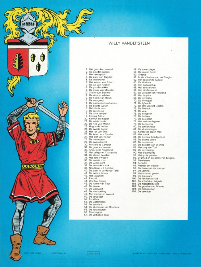 De vermelding "De Rode Ridder" ontbreekt op de achterzijde boven de tabel der reeds verschenen titels.