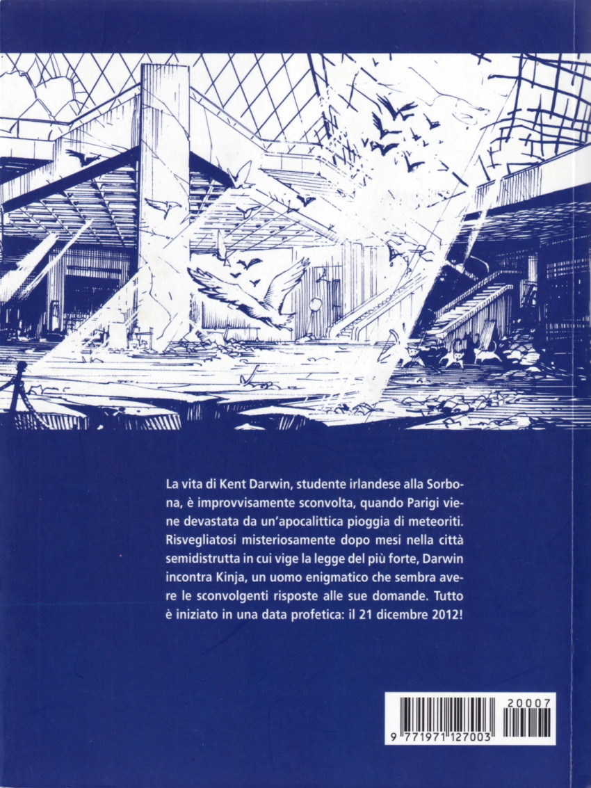 Résumé: La vita di Kent Darwin, studente irlandese alla Sorbona, è improvvisamente sconvolta: Parigi viene devastata da eventi apocalittici apparentemente inspiegabili che hanno inizio la sera in cui Kent chiede alla fidanzata Chieko di sposarlo. Dopo aver perso i sensi, il ragazzo si risveglia e scopre che da quella terribile notte sono trascorsi interi mesi di cui lui non conserva memoria. In una città irriconoscibile, Darwin affronta i sopravvissuti, organizzati in gruppi senza più alcuna legge, insieme a un misterioso uomo che sembra sapere tutto di lui...