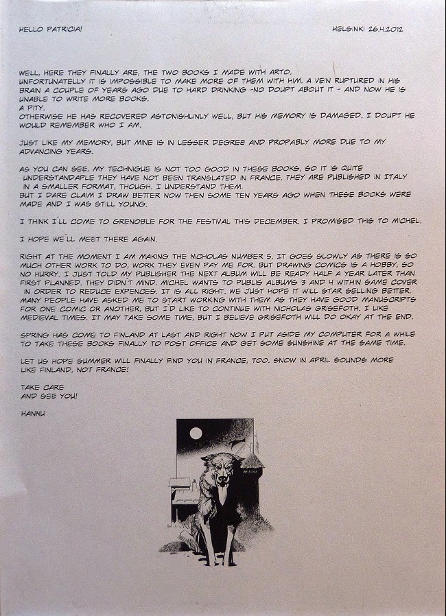 - Info édition : Ronkoteus, le charpentier volant, édition finlandaise avec jaquette couleurs. Accompagné d'un courrier personnel adressé à Patricia.